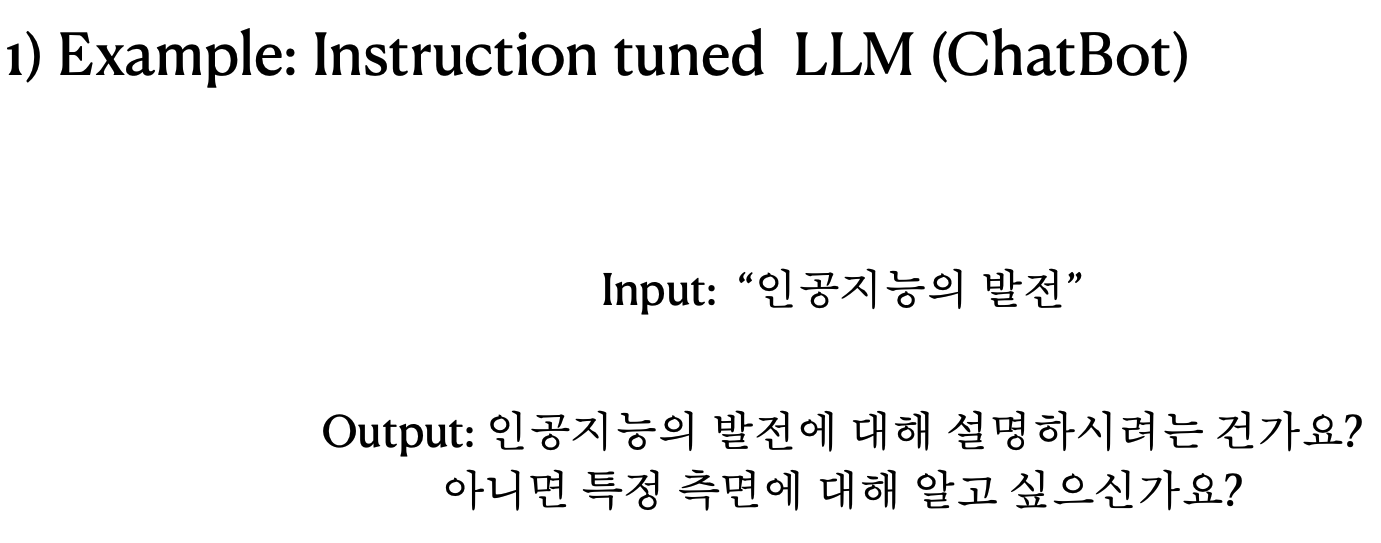 - Base LLM에서 특정 작업을 수행하기 위해 추가적인 학습을 통해 개선된 모델