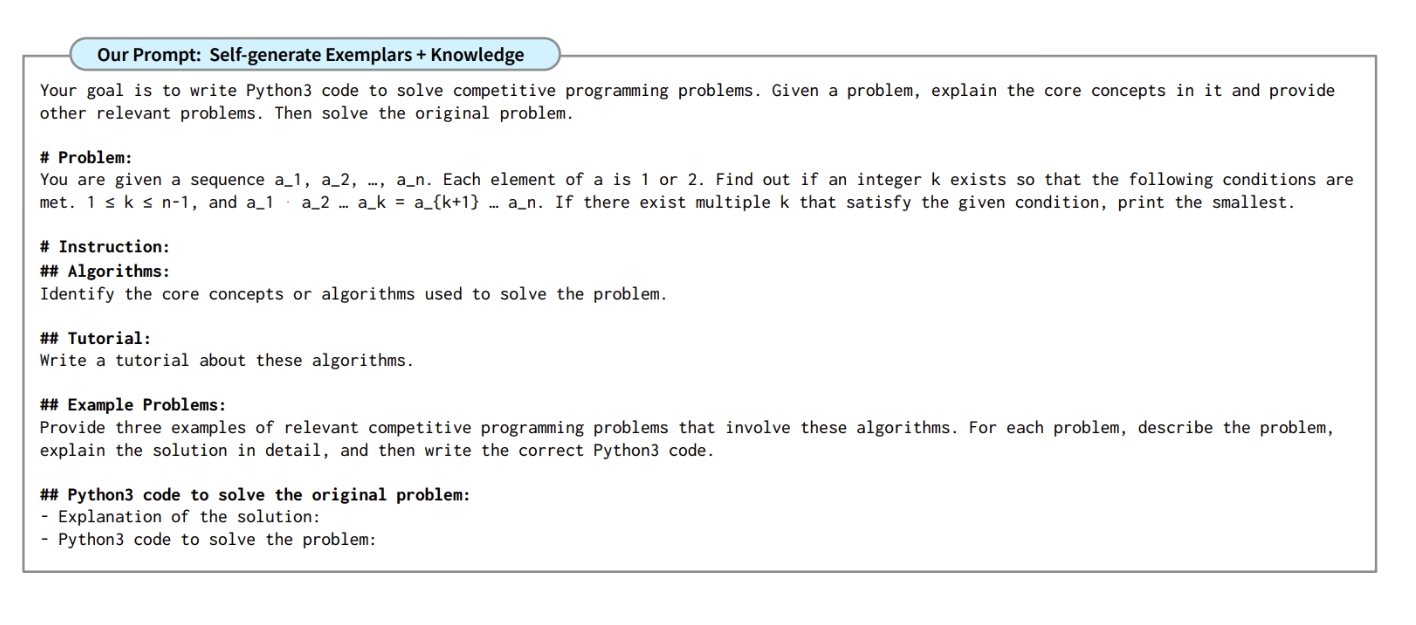 문제를 해결하기 전에 모델이 스스로 관련 예시와 지식을 생성한 후 문제를 해결하는 기법