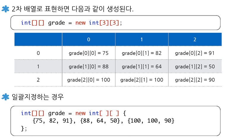 3) 2차원 배열의 선언과 할당의 일괄처리