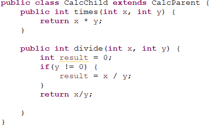 - CalcChild 클래스에 times()메서드와 divdie()메서드를 추가하면 상속받은 메서드에 새로운 기능을 추가하는 효과를 얻을 수 있다.