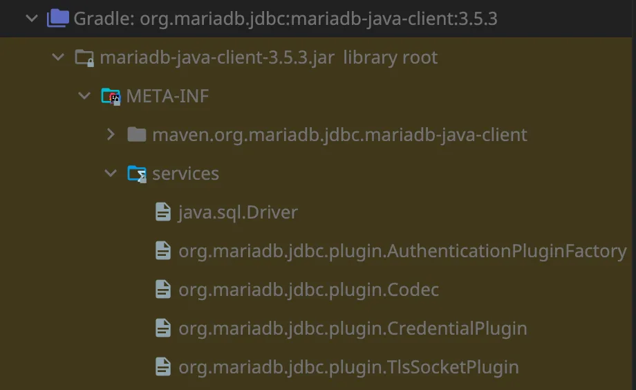 이 Driver 인터페이스를 구현한 구현체가 바로 org.mariadb.jdbc.Driver 라는 것이다.