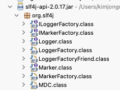 (오른쪽 사진은 LogBack 과 Log4j 두 라이브러리의 표준 인터페이스인 Slf4j 로깅 라이브러리이다.)