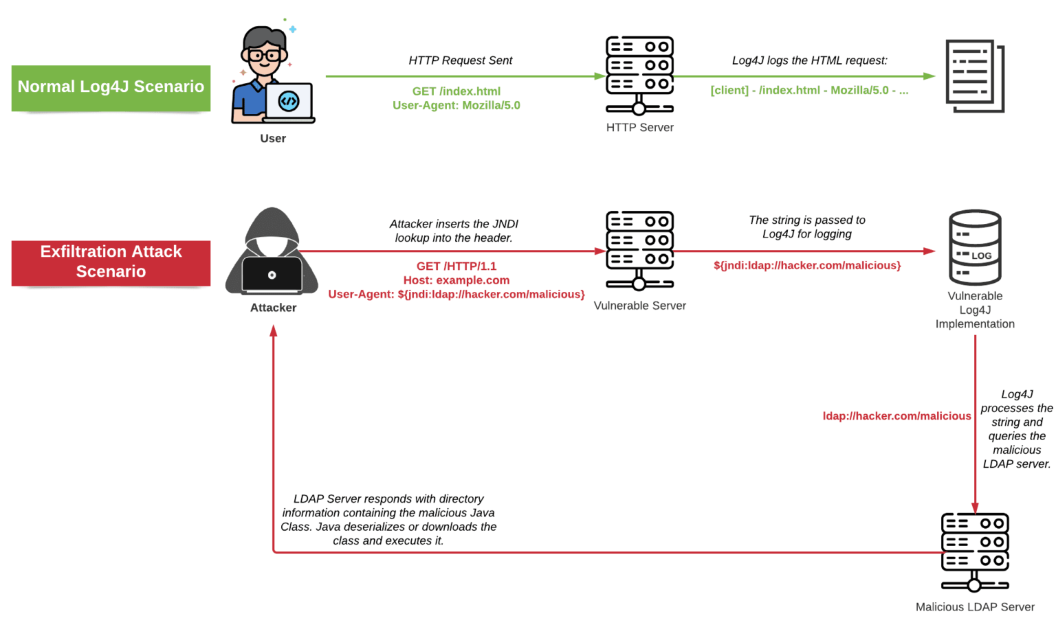다른 예시이지만, Log4j에 있는 RCE의 공격 흐름을 표현하면 아래와 같다.