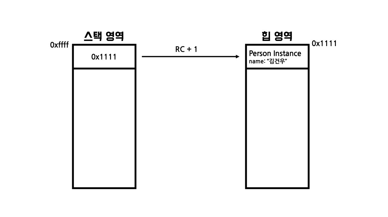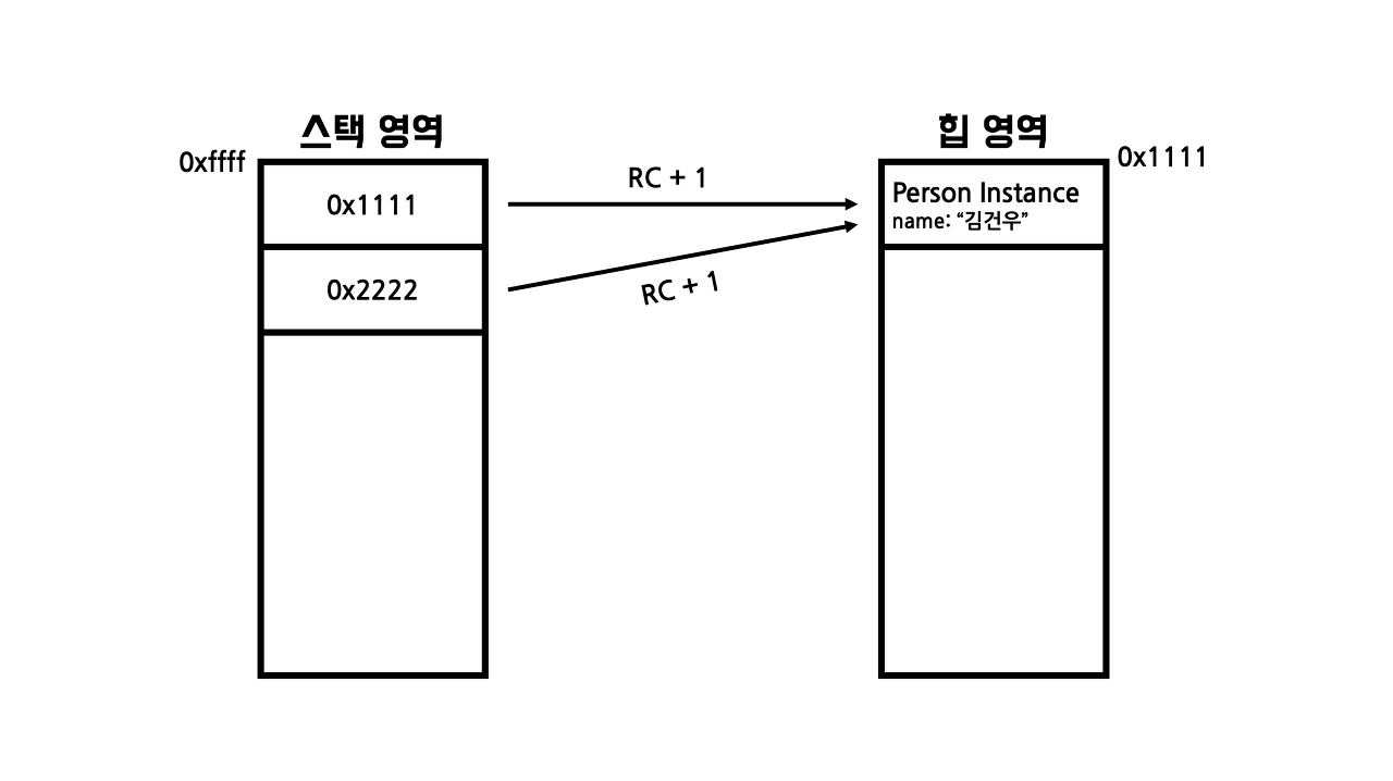// Person 클래스 타입의 인스턴스 RC 1 증가