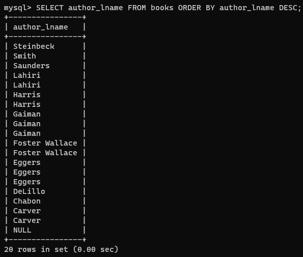 지정한 조건에 따라 데이터를 보고자 할때 사용합니다. 먼저 작가의 last name을 기준으로 작가들을 식별한 것 입니다.
