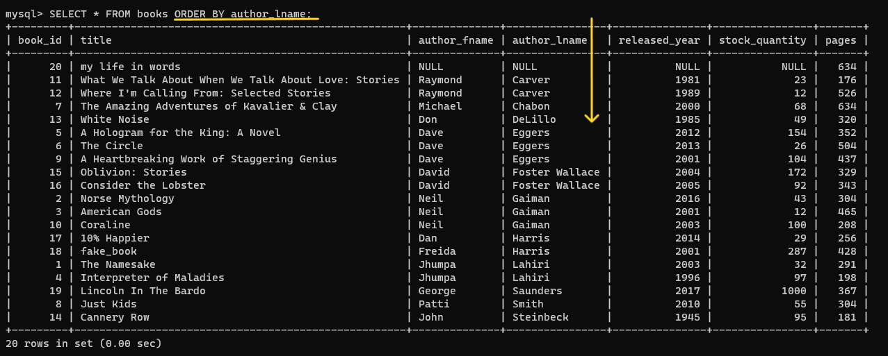 책의 제목과 작가의 이름을 가진 테이블을 통해 다양한 함수에 대해 알아보겠습니다.