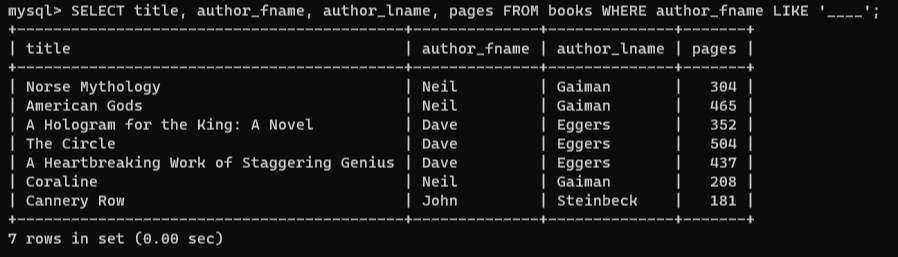 언더바를 통해 길이로 검색을 할 수도 있습니다. 다음과 같이 언더바 x 4로 검색을하면 길이가 4인 내용을 출력합니다.