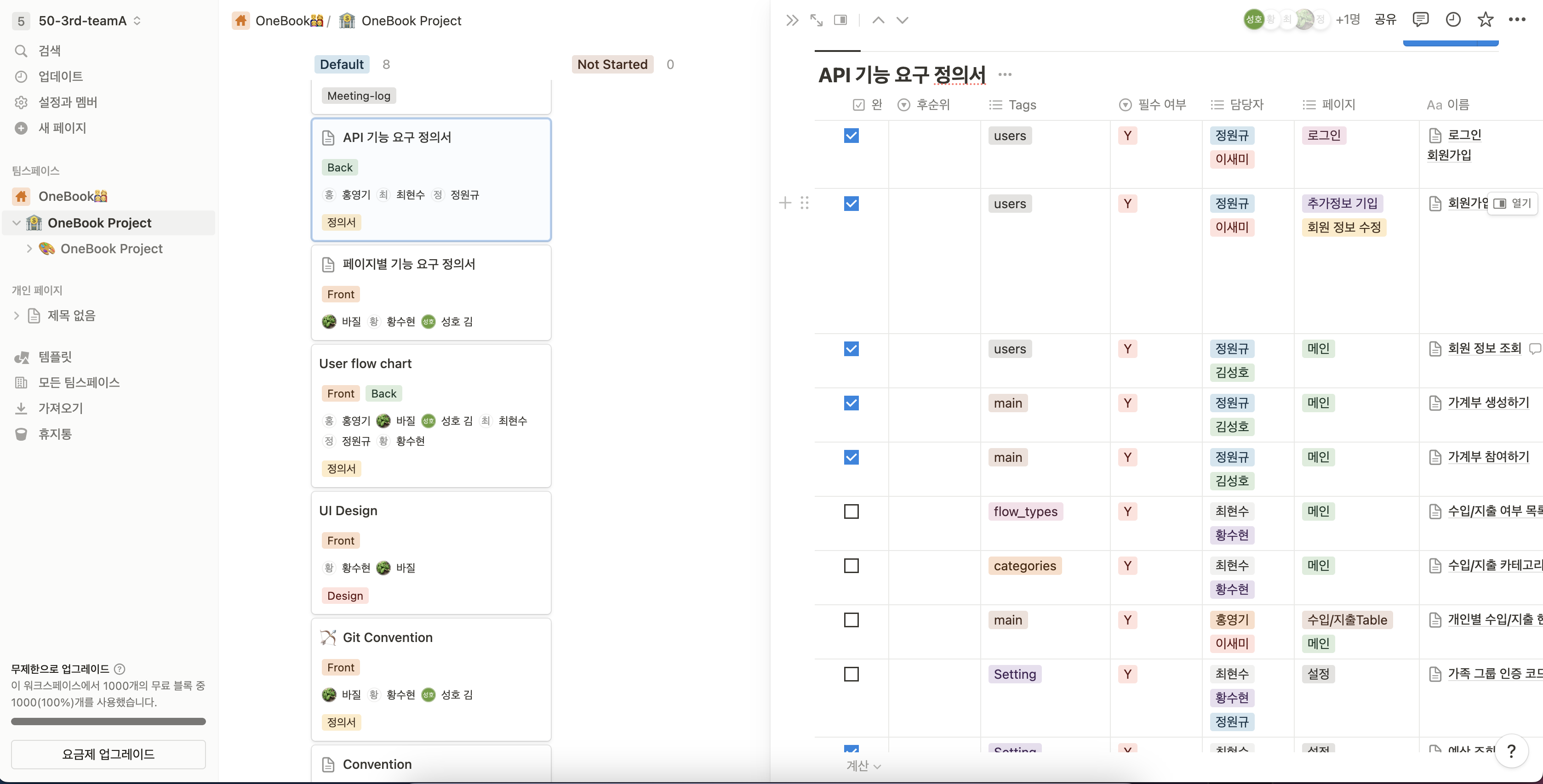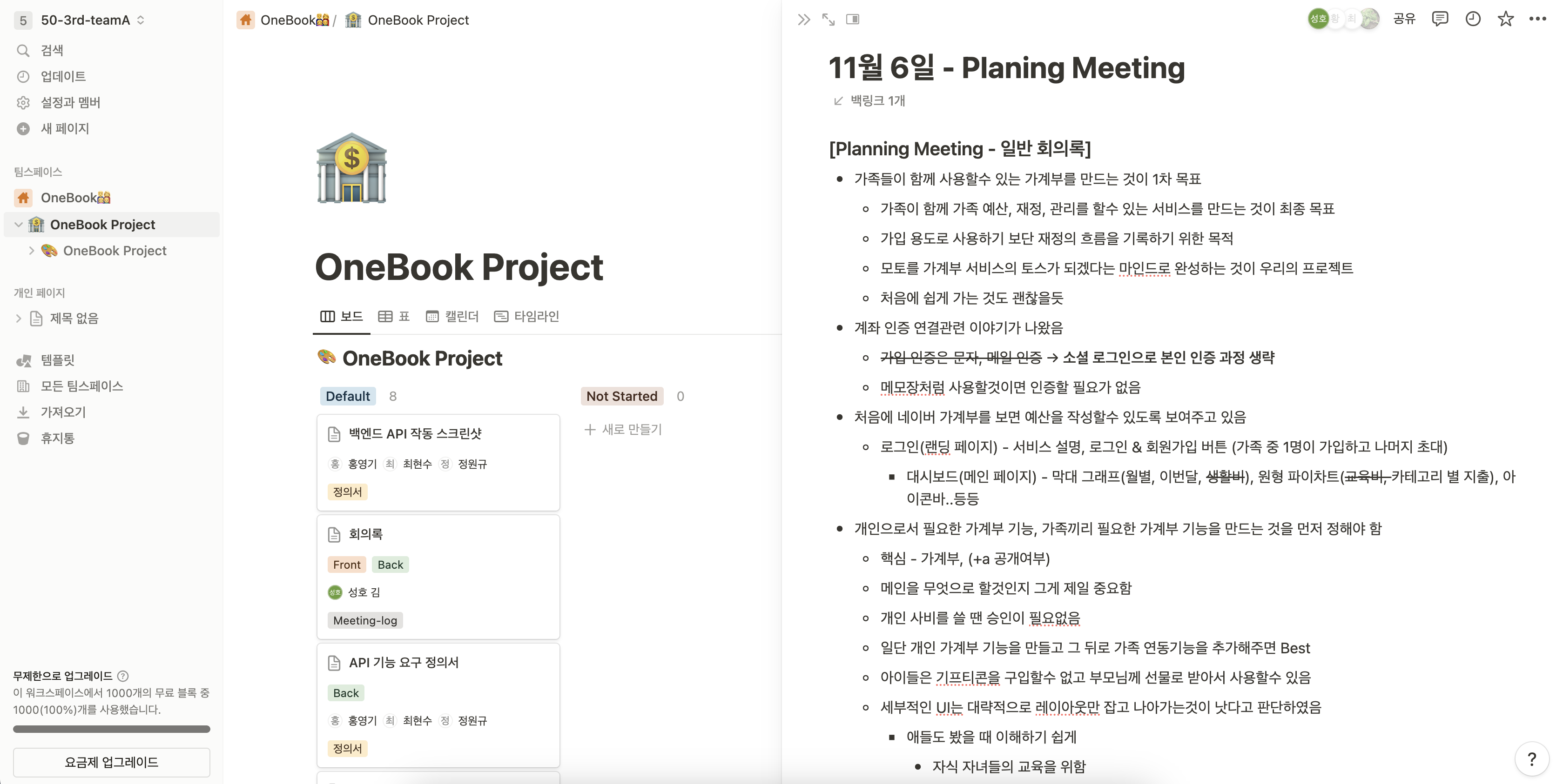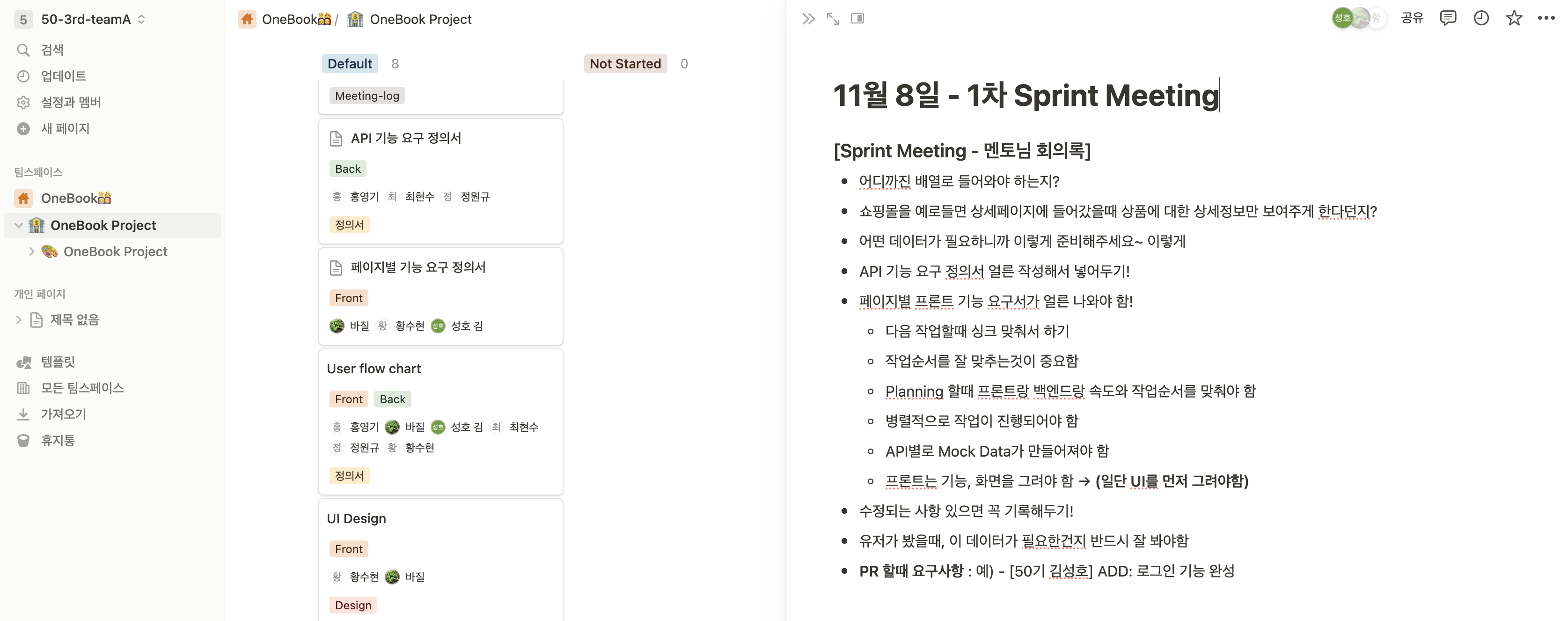 Daily Standup Meeting, Planing Meeting, Sprint Meeting 시 기록한 회의록 및 프로젝트 기능 요구 정의서를 정리해둔 Notion 툴