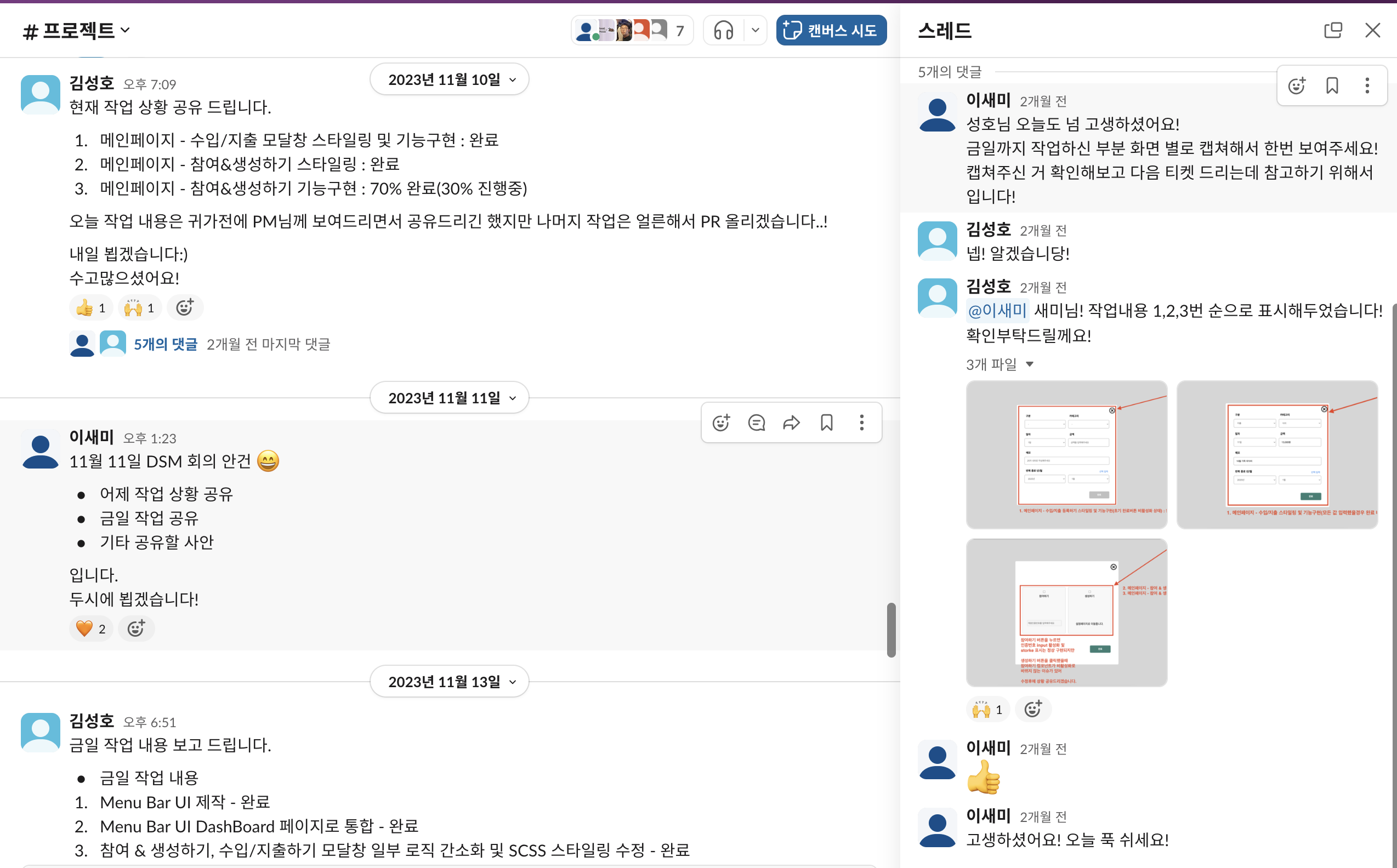 OneBook 팀원들과 소통하는데 사용했던 Slack 채널 방