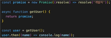 하지만 만약 이렇게 async 안에 promise를 반환하면 한 번 더 프로미스로 감싸는게 아닌 그대로 반환이 된다.