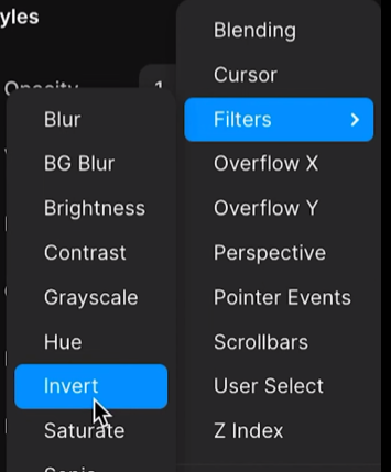 style의 +버튼을 누르고 filter -> invert를 누르면 색이 반전된다.
