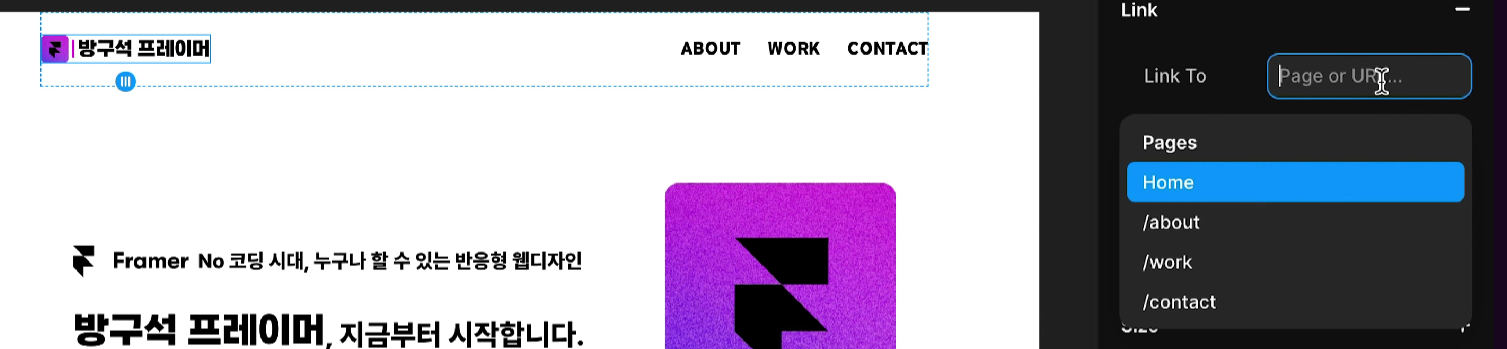 원하는 프레임을 눌러 외부 링크를 입력한다.