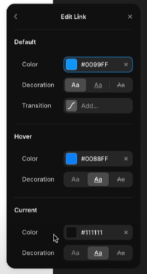url을 추가한 버튼의 style을 누르고, 동그라미 친 부분에 있는 edit을 클릭하면 3가지 상황이 나온다.