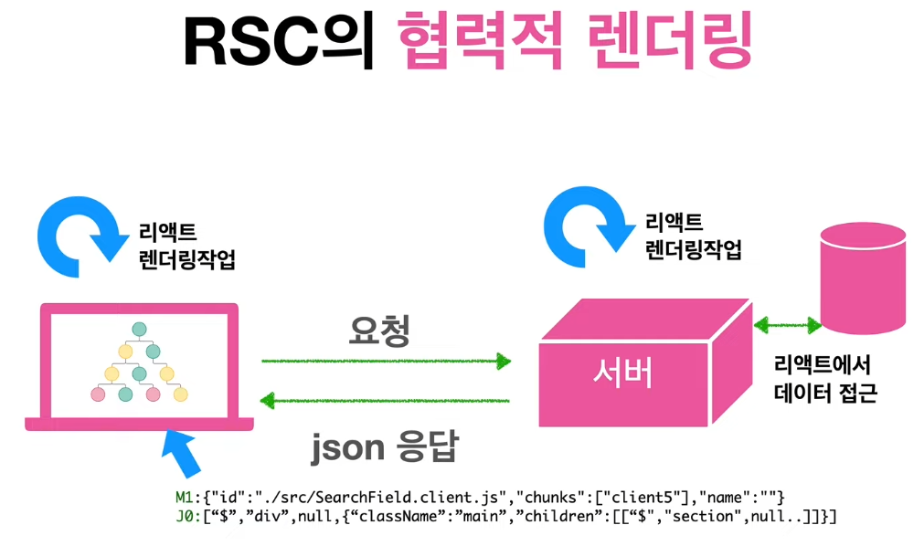 클라이언트 컴포넌트랑 서버 컴포넌트로 나눠져 있고, 이것들이 하나의 트리로 동작