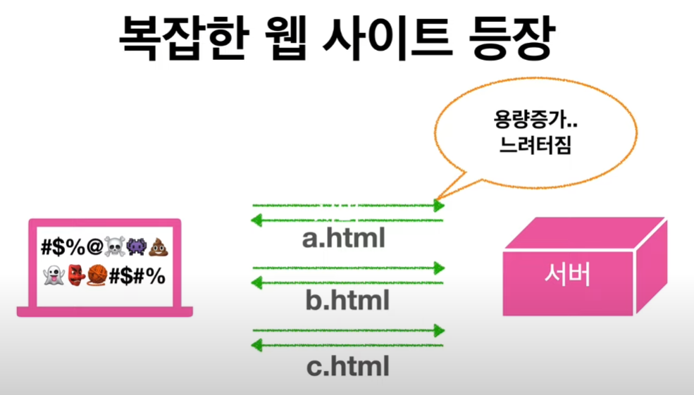 그러면 복잡한 웹 사이트에서 a를 요청했는데 a의 내용이 많으면 용량도 증가되고 느려진다.