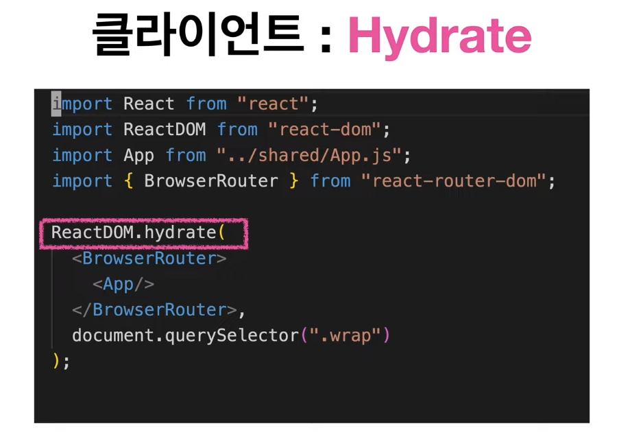 클라이언트에서는 리액트같은 경우 하이드레이트라는 기술로 서버에서 주는 html에다 이벤트를 등록하는 일을 해야한다.