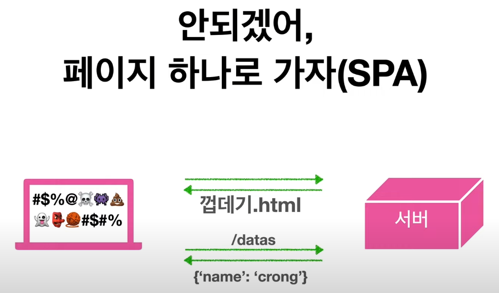 처음엔 아무것도 없는 껍데기만 받아오고, 필요한 것들을 모두 api로 서버에 요청하는 방식이다. 데이터를 받아와서 클라이언트가 렌더링한다.