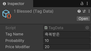 └ 또한 등급이 결정되는 확률이나 붙을 수 있는 태그를 아이템마다 각각 다르게 만들고 싶었다