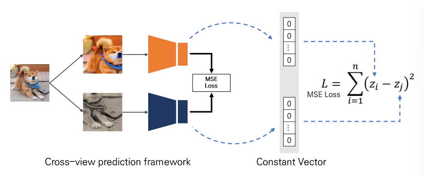 많은 self-supervised learning 방식들은 cross-view prediction framework를 기반으로 한다. 이 방식은 동일한 이미지의 다른 view(positive sample)를 서로 예측함으로써 representation을 학습한다. 동일한 이미지에서 생성된 뷰는 다른 뷰의 representation을 예측해야 하는데, 동일한 이미지의 다른 뷰를 예측하는 것은 collapsed representaiton으로 이어질 수 있다.