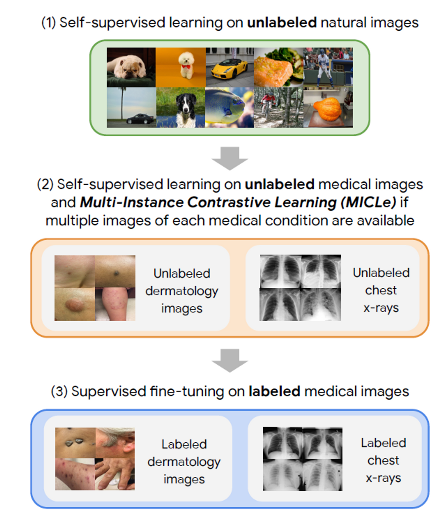 이번 포스트에서 리뷰할 논문은 self-supervised learning의 method중 SimCLR를 이용하여 medical image classification을 해결하는 Big Self-Supervised Models Advance Medical Image Classification(pdf) 논문이다. SimCLR 논문에 대해 알고 싶다면 이전 포스트를 참고하면 된다.
