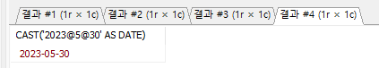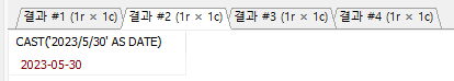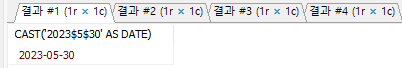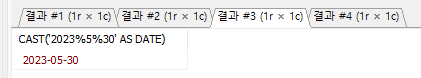 SELECT '2023-5-30'; -- λ μ§νμΌλ‘ λ°λ μ μλ λ¬Έμλ DATEνμΌλ‘ λ³νλλ€.