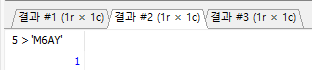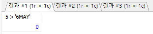 SELECT 5 > '6MAY'; -- λ¬Έμμμ 첫λ²μ§Έλ‘ λμ¨ μ«μλ μ μλ‘ μ νλλ€.