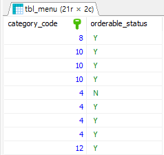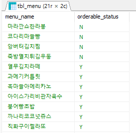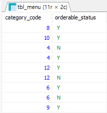 orderable_status CHAR(1) NOT NULL COMMENT '์ฃผ๋ฌธ๊ฐ๋ฅ์ํ',