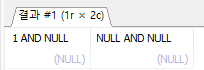 ๋ ๋ค NULL์ด ์๋๋ฉด์ ํ๋๋ผ๋ 0์ด ์๋ ๊ฐ์ด ์์ ๊ฒฝ์ฐ 1์ ๋ฐํํ๋ค.(์ด๋ฏธ 1์ด๋ฉด ๋ค๋ฅผ ์ฐ์ฐํ์ง ์๋๋ค.)