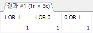 SELECT 1 OR 1, 1 OR 0, 0 OR 1;