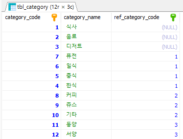 INSERT INTO tbl_category VALUES (null, '์ปคํผ', 2);