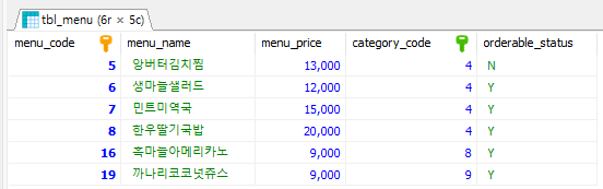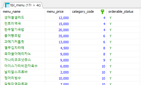 INSERT INTO tbl_menu VALUES (null, '๋ถ์ด๋นต์ด๋ฐฅ', 35000, 6, 'Y');