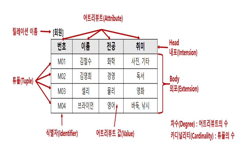 | 참조 무결성 (Referentail Integrity) | 엔터티의 왜래 식별자 속성은 참조하는 엔터티의 주 식별자 값에 포함되거나 널이어야 함을 의미 |