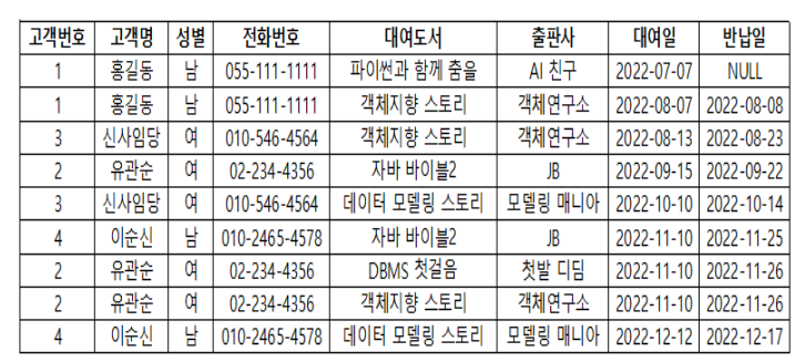 | 엔티티 무결성 (Entity Integrity) | 모든 인스턴스는 고유해야 하며 인스턴스를 대표하는 속성에는 널 값을 가지면 안된다는 의미 |
