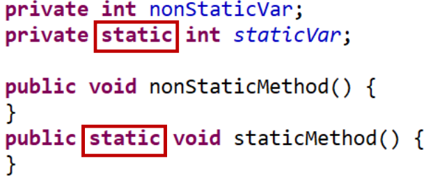 static ํ๋๋ ๋ฉ์๋๋ ์ธ์คํด์ค ์์ฑ ์์ด ํด๋์ค๋ช .์ ํตํด ์ ๊ทผํด์ ์ฌ์ฉ์ด ๊ฐ๋ฅํ๋ค.