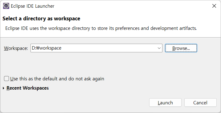์ดํด๋ฆฝ์ค ์คํ ๋ฐ Workspace ์์ฑ