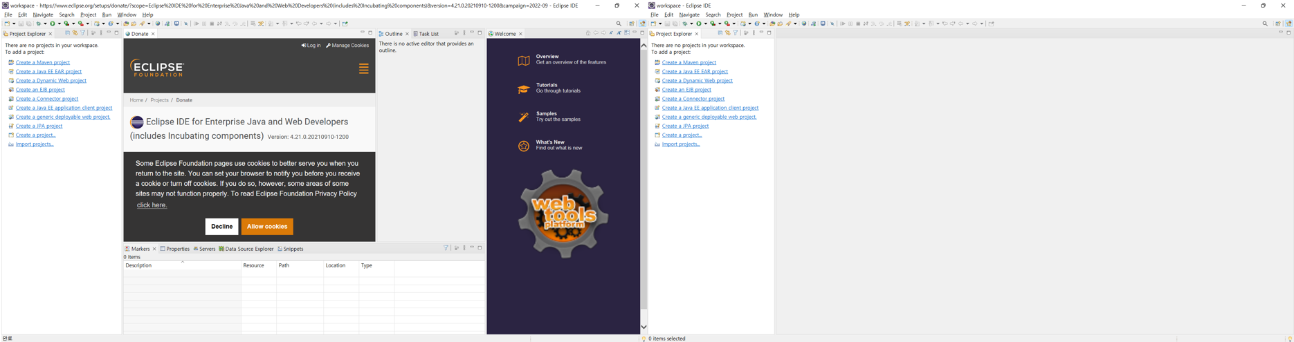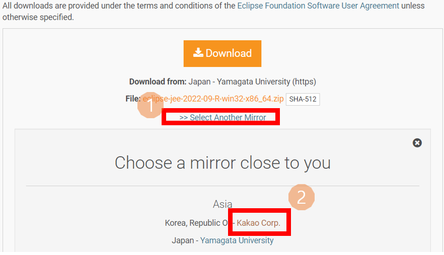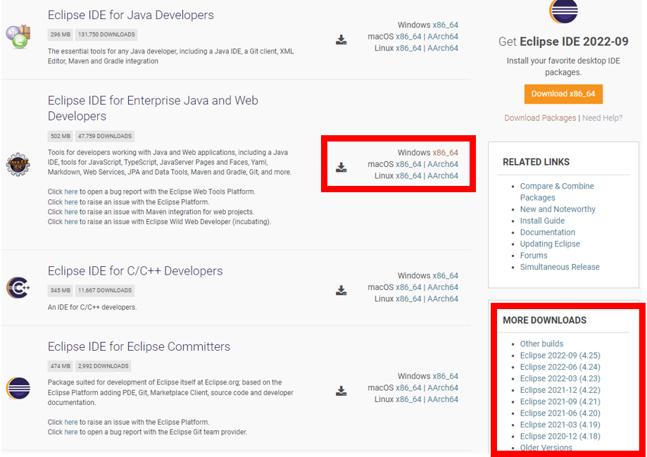 Eclipse IDE for Enterprise Java and Web Developers ํญ์์ ์์ ์ ๋ง๋ OS ๋ฒ์ ์ผ๋ก ๋ค์ด ๋ฐ์ ์ ์๋ค. ํ์ฌ๋ Eclipse IDE 2022-09 ๋ฒ์ ์ ๋ฐ๋ ํ์ด์ง์ด์ง๋ง, ์ด์ ๋ฒ์ ๋ ๋ค์ด ๋ฐ์ ์ ์๋๋ก ์ง์ํด์ฃผ๊ณ ์๋ค.