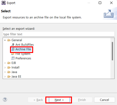 Archive File ์ ์ ํํ ํ Next
