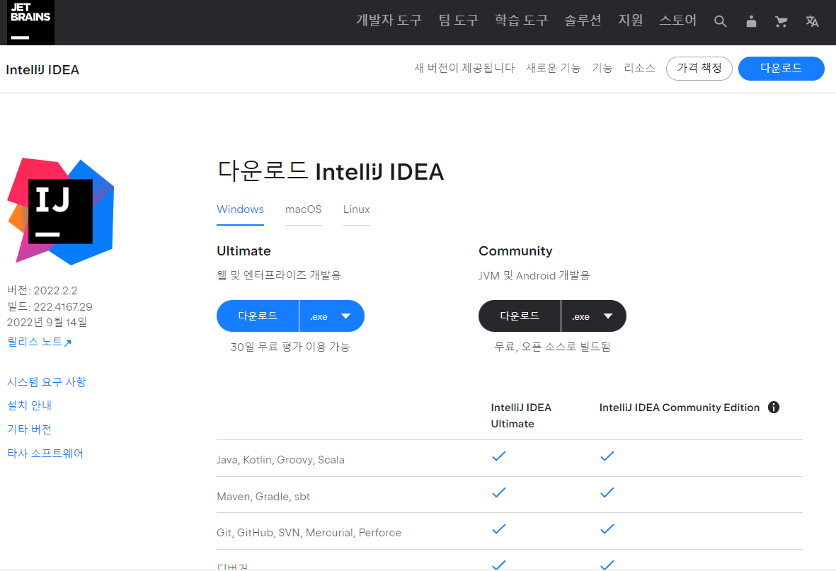 Intellij ๋ ๋ฌด๋ฃ ๋ฒ์ ์ธ ์ปค๋ฎค๋ํฐ ์๋์ ๊ณผ ์ ๋ฃ ๋ฒ์ ์ธ ์ผํฐ๋ฐ ์๋์ ์ผ๋ก ๋๋๋ค. (์ผํฐ๋ฐ ์๋์ ์ 1๋ฌ ๋ฌด๋ฃ ์ฒดํ์ด ๊ฐ๋ฅํ๋ค)