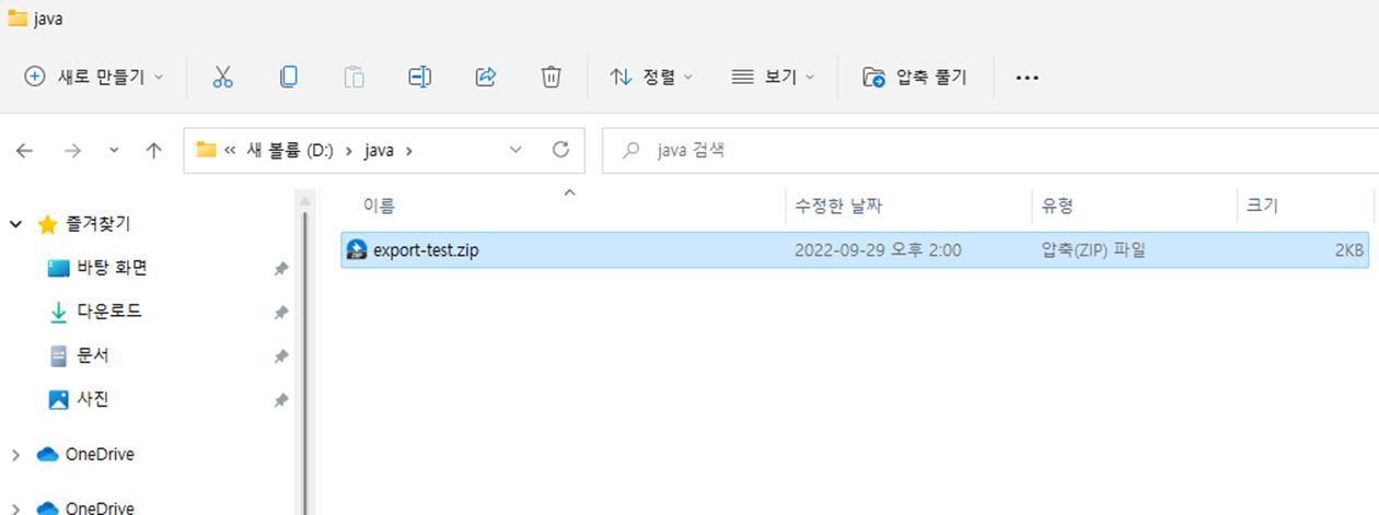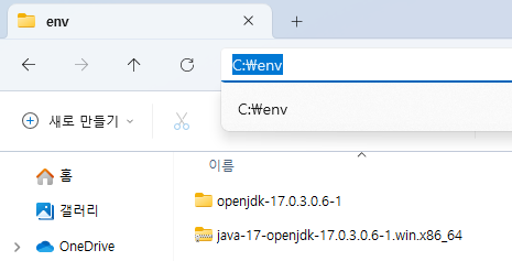 ๋ค์ด ๋ฐ์ JDK ์์ถ ํ์ผ์ ์ฝ๊ฒ ์ฐพ์ ์ ์๋ ์์น์ ์ด๋์ํจ ํ ์์ถ์ ํด์ ํ๋ค. ์์ถ ํด์ ์ ํด๋๋ช ์ด ๊ธธ์ง ์๋๋ก ์ ์ค์ ํ๋ค.