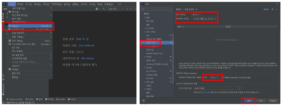 ๊ฐ๋ฐํ๊ธฐ ์ ํ๊ธ์ด ๊นจ์ง์ง ์๊ฒ UTF-8 ์ธ์ฝ๋ฉ ์ค์ ์ ํด์ค๋ค.