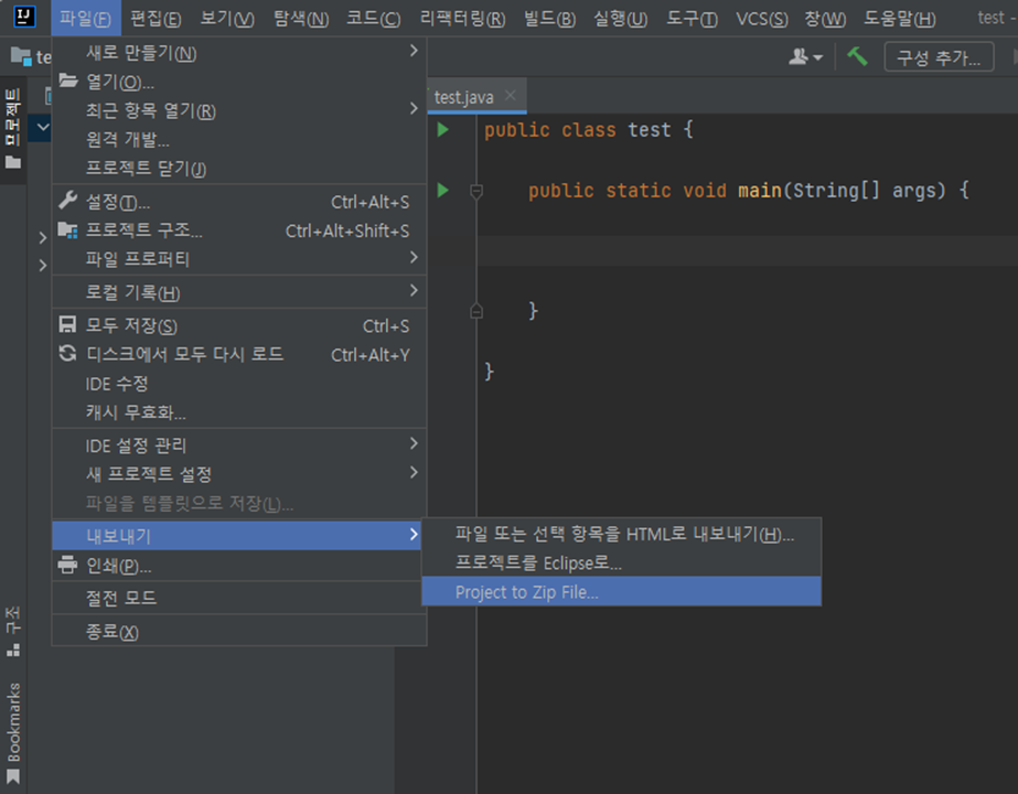 File โ Export(๋ด๋ณด๋ด๊ธฐ) โ Project to zip Fileโฆ ์ ํด๋ฆญํ๋ค.