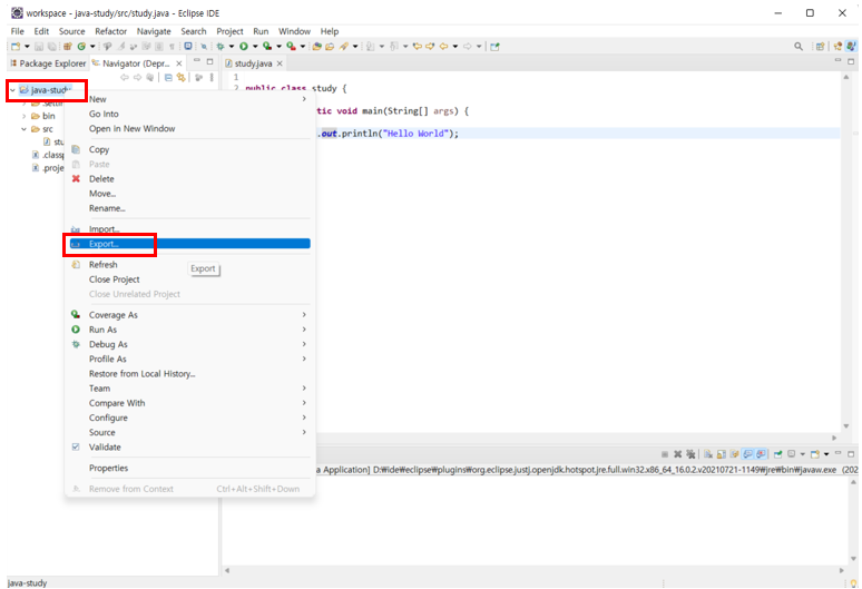 ์์ ์ค์ธ ํ๋ก์ ํธ๋ฅผ ๋ด๋ณด๋ด๊ธฐ ํ๊ธฐ ์ํด์ ํ๋ก์ ํธ๋ฅผ ์ค๋ฅธ์ชฝ ํด๋ฆญํ ํ Export๋ฅผ ๋๋ฅธ๋ค