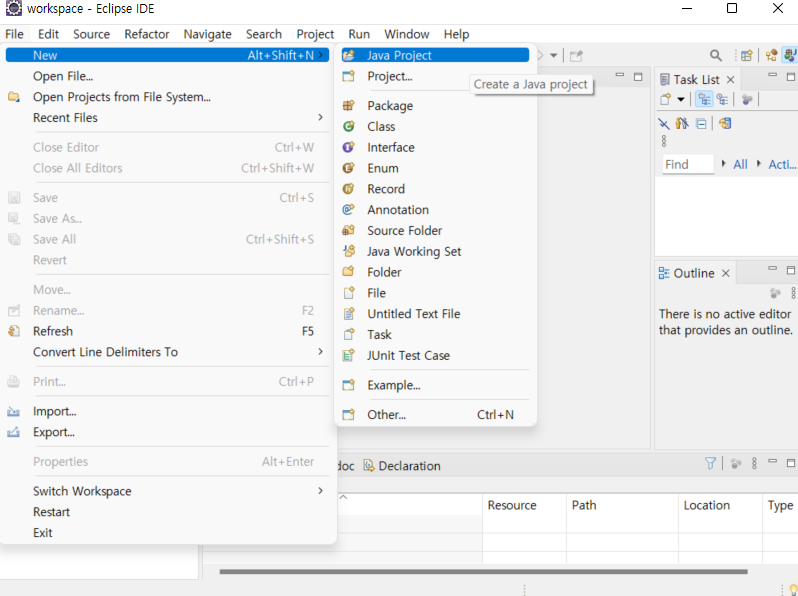 ์ ํ๋ก์ ํธ๋ฅผ ์์ฑ์ File โ New โ Java Project
