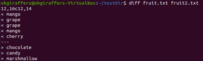 ## 결과는 fruit.txt의 12번째 줄부터 16번째 행이 fruit2.txt의 12번째 줄부터 14번째 줄로 변경되었음을 나타낸다.