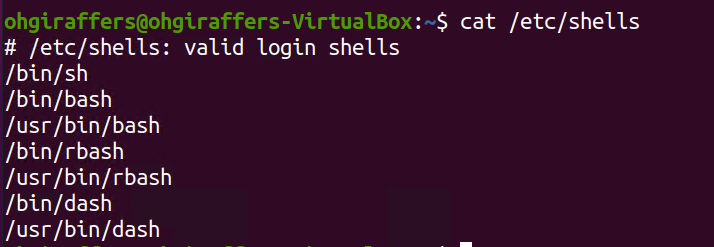 ## 아래 명령어로 계정별 shell들을 확인할 수 있다.