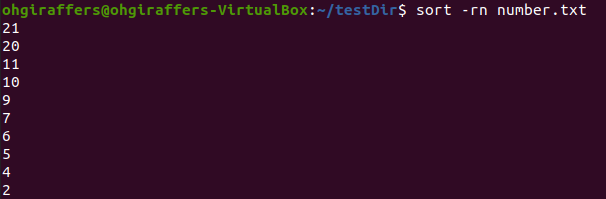 💡 -r 옵션을 추가하면 역순으로 정렬된다.