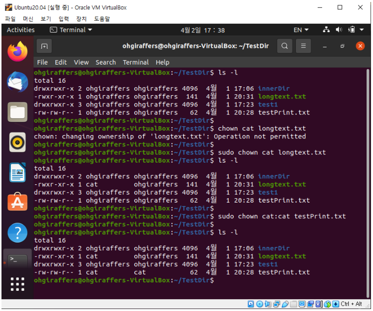 💡 파일 또는 디렉토리의 소유권을 변경하는 명령어이다.
