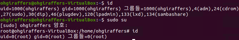 - sudo su - : 우분투에서도 root로 로그인(위험하니 자제할 것)