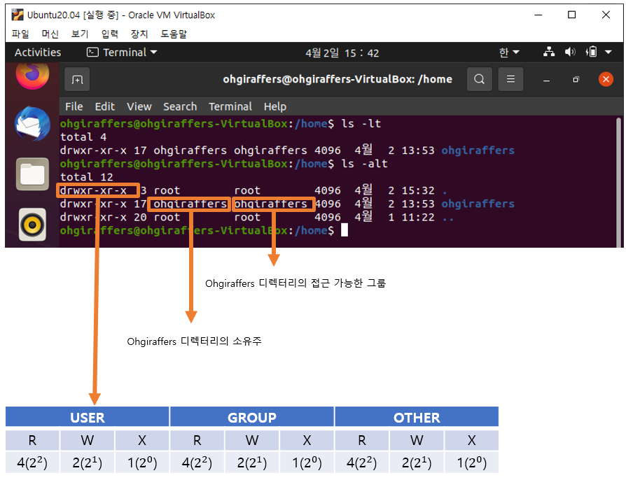💡 접근 권한은 크게 유저 본인, GROUP, OTHER에 대해 설정할 수 있다.