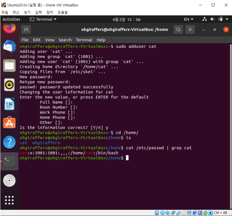 - su - ohgiraffers : ohgiraffers의 ID로 로그인, ohgiraffers 계정의 home 디렉토리도 사용